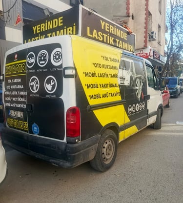 Lastiğiniz patladığında hemen yanınızdayız, yerinde tamir hizmeti.